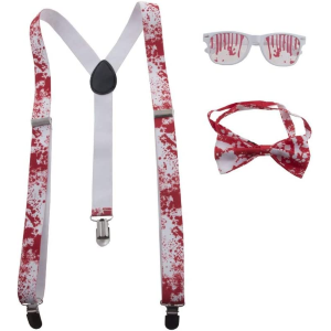 Funny Fashion Set Horror Occhiali, Bretelle, Papillon Effetto insanguinato