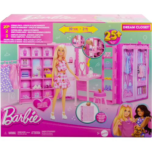 MATTEL HXD58 BARBIE ARMADIO DEI SOGNI, playset con bambola bionda alla moda, armadio largo 90+ cm con 25 vestiti e accessori