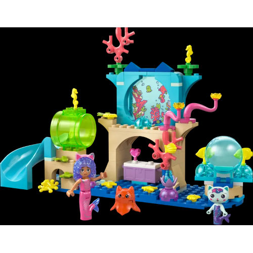 Questo set da gioco è ricco di funzioni vivaci e personaggi familiari, tra cui una minidoll di Gabby con il suo costume da sirena, la Siregatta e le meduse. I bambini possono unirsi a Gabby e ai suoi amici per esplorare un colorato ambiente sottomarino pieno di conchiglie, piante e vita marina. Ci sono tantissime cose da scoprire, tra cui uno scivolo, una bolla gigante in cui Siregatta può "galleggiare" e un corallo che si muove per rivelare uno scrigno nascosto. Il set contiene istruzioni colorate, un grande Starter Brick e sacchetti separati contenenti ognuno 1 modello per rendere la costruzione creativa veloce e divertente per i piccoli costruttori.