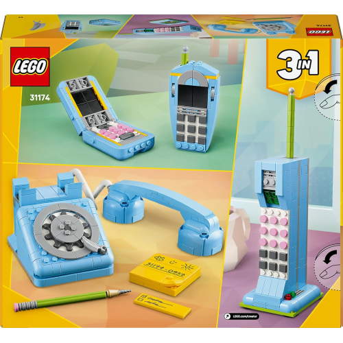 LEGO 31174 CREATOR 3 IN 1 Telefono Retrò con Disco di Selezione Rotante - Si Trasforma in un Modello Anni '80 o in 2 Telefoni Cellulari