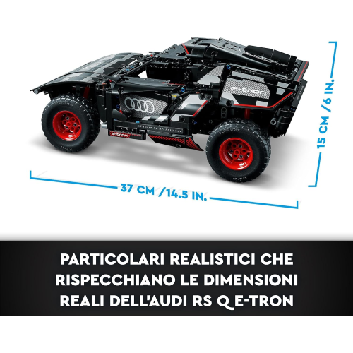 Ragazzi, ragazze e tutti i fan di auto da rally e macchine telecomandate da 10 anni in su possono creare le proprie gare off-road, con il modellino LEGO Technic Audi RS Q e-tron di Dakar 2022