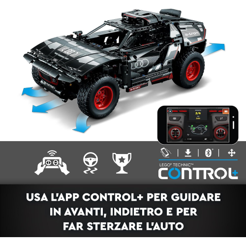 La macchina giocattolo LEGO Technic Audi RS Q e-tron, controllata tramite app, è un regalo entusiasmante per bambini, bambine, ragazzi e ragazze da 10 anni in su, con la passione per le auto telecomandate
