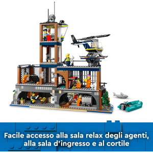 Prigione sull'Isola della Polizia LEGO City: questo set di giochi da costruire, per bambini e bambine da 7 anni in su, è ricco di funzioni e di veicoli giocattolo della polizia, per infinite ore di gioco