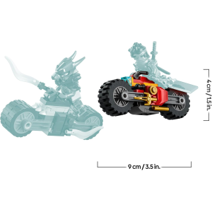 Veicoli giocattolo LEGO in mattoncini: il set da battaglia contiene 2 motociclette giocattolo con ruote funzionanti; la moto da corsa di Kai adornata con 2 pugnali, e la moto demoniaca dello Scout dragoniano spettrale