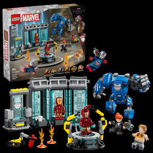 Il giocattolo LEGO® Marvel costruibile contiene 3 capsule di armature e 3 minifigure in di Iron Man in armatura: MK1, MK43 e MK6. La lineup è completata dalle minifigure di Pepper Potts e del cattivo Aldrich Killian, il robot Dum-E costruibile e un grande mech Igor Iron Man MK3 con braccia e gambe mobili e cabina di guida con spazio per una minifigure. Altre caratteristiche includono una piattaforma di manutenzione con 2 bracci robotici e un grande dispositivo di scansione. Ci sono anche un estintore, 2 elementi fiamma e 2 shooter per dare inizio dell’azione di battaglia. Per un ulteriore divertimento digitale, i costruttori possono ingrandire, ruotare i modelli in 3D e monitorare i loro progressi utilizzando la divertente e intuitiva app LEGO Builder. Il set contiene 384 pezzi.