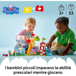 IMPARARE GIOCANDO: il gioco prescolastico LEGO DUPLO Peppa Pig Funfair, è adatto alle piccole mani dei bambini, ed è compatibili con gli altri set della gamma