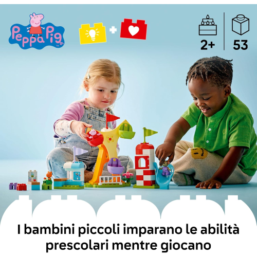LUNA PARK GIOCATTOLO DA COSTRUIRE: il set di giochi didattici LEGO DUPLO Peppa Pig Luna Park, consente ai piccoli di imparare giocando mentre scoprono il parco dei divertimenti con i personaggi del loro programma TV