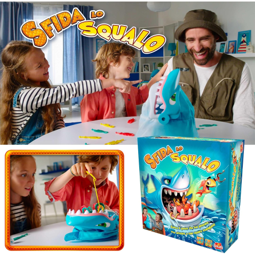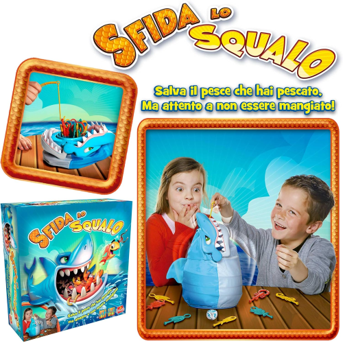 UN GIOCO DI PESCA SORPRENDENTE PIENO DI AZIONE : Sfida lo Squalo è un gioco da tavolo per bambini dai 4 anni in cui ogni turno può finire con un morso! I giocatori pescano creature marine colorate con le canne da pesca, ma attenzione: lo squalo può scattare in qualsiasi momento! Un mix perfetto di suspense e divertimento.