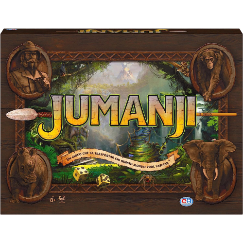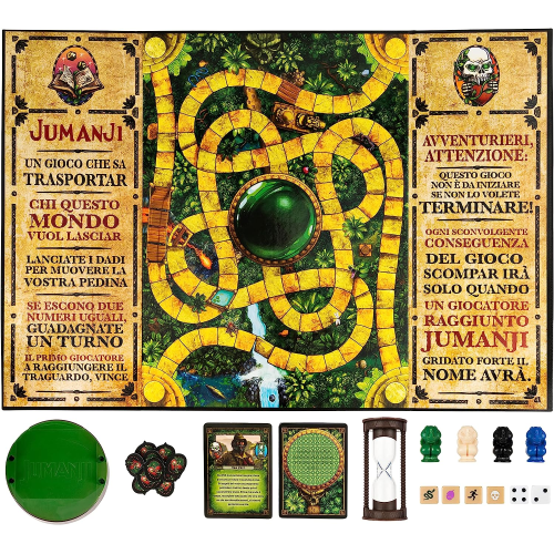 AVVENTURIERI ATTENZIONE: QUESTO GIOCO NON INIZIATE SE NON INTENDETE TERMINARE! Jumanji Questo gioco porta voi e i vostri compagni di avventura in una missione attraverso la giungla, risolvendo enigmi e completando sfide mentre cercate di non perdere i vostri Gettoni Vita