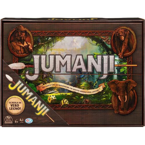 AVVENTURIERI ATTENZIONE: QUESTO GIOCO NON INIZIATE SE NON INTENDETE TERMINARE! Jumanji il classico dei giochi da tavolo che permette di giocare in famiglia o con gli amici, da un minimo di 2 fino a un massimo di 4 giocatori, per divertirsi sfidando parenti e amici! Adatto a bamini dagli 8 anni in su, porta voi e i vostri compagni di avventura in una missione attraverso la giungla, risolvendo enigmi e completando sfide mentre cercate di non perdere i vostri Gettoni Vita