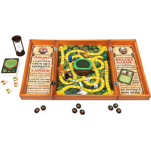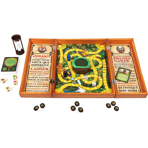 VERO LEGNO: aprite la confezione in legno a mo' di scrigno per scoprire i misteri di Jumanji. Questa edizione del gioco in scatola di vero legno è impedibile per la vostra collezione di giochi da tavolo per tutta la famiglia!