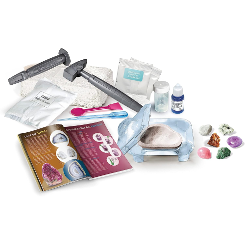 GEODE: sono inclusi anche gli ingredienti base e uno stampo per riprodurre un affascinante geode da impreziosire con cristalli colorati e brillanti.