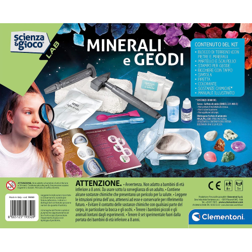CLEMENTONI 19350 SCIENZA & GIOCO LABORATORIO MINERALI E GEODI, GIOCO SCIENTIFICO - 8 ANNI +
