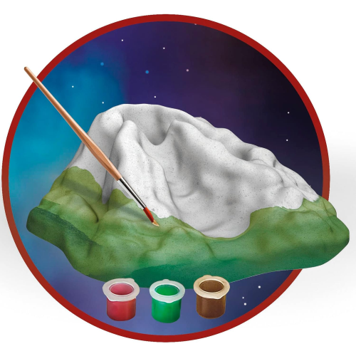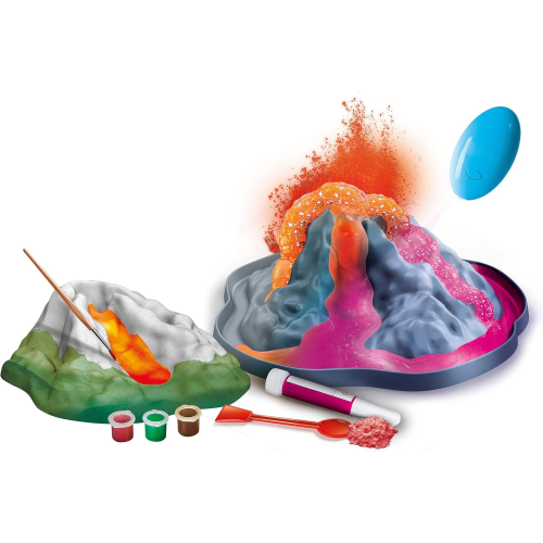 CONTENUTO DEL GIOCO: gesso e stampo per realizzare il vulcano, tempere per colorarlo, bicarbonato, torcia UV e un pigmento neon per realizzare eruzioni sorprendenti!