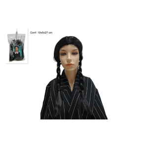 PARRUCCA MERCOLEDI NERA CON TRECCE