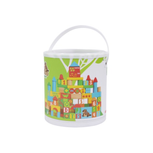 Wood Eco Smart è la nuovissima linea di giocattoli in legno realizzata in collaborazione con SEVI. I giocattoli e gli imballaggi sono realizzati con materie prime certificate FSC®, provenienti da fonti forestali gestite in modo responsabile. I prodotti della linea sono studiati per accompagnare i bambini in età scolare e pre scolare nella scoperta e nell’esplorazione e per stimolare i 5 sensi con un materiale durevole e sicuro, come il legno. Secchiello con 100 blocchi di forme e dimensioni differenti, per creare tante costruzioni. Il coperchio del secchiello ha gli incastri per divertirsi ad inserire le formine al posto giusto!
