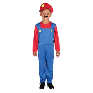 Costume da idraulico per bambini, taglia S, composto da tuta, berretto e baffi.