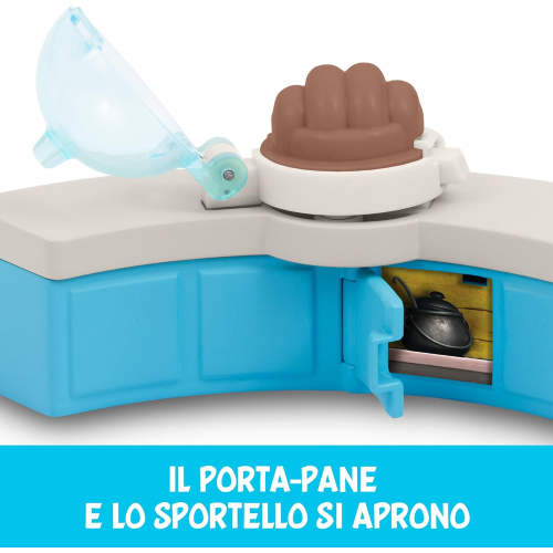Il set include una cloche del pane e un'antina apribile, offrendo accessori autentici che arricchiscono la creatività durante il gioco.