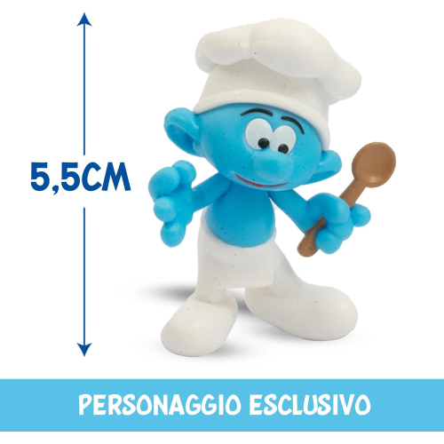 con un Puffo alto 5,5 cm incluso, il Mini Playset è progettato per adattarsi perfettamente a collezioni esistenti o per essere utilizzato come inizio di una nuova avventura Puffi.