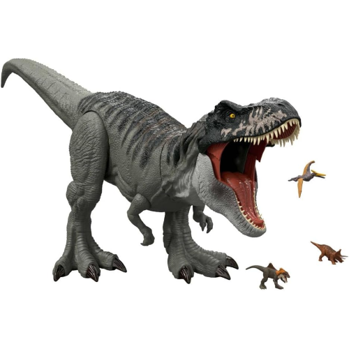 T-Rex in formato gigante! Porta a casa le emozioni di Jurassic World Rebirth con questa enorme action figure del T-Rex lunga circa 99 cm.
