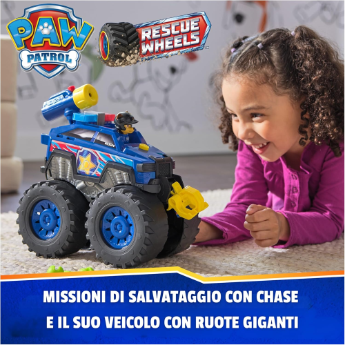 ACTION FIGURE SPECIALE: Chase indossa la divisa tematizzata Rescue Wheels, completa di casco e zaino. Aggancia Chase al posto di guida prima di partire per una missione di salvataggio ricca d'azione