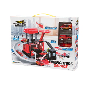 Garage 3 piani con base di atterraggio per l’elicottero. 2 auto e 1 elicottero inclusi. Dimensioni: 48.5x27x36.5 cm
