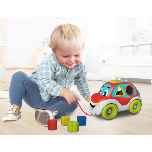 AUTO INCASTRA FORME: Grazie all'attività di inserimento forme il bambino potrà esercitare la manualità incoraggiato dal feedback sonoro. Una volta completata l'attività il baule si può aprire per recuperare le formine.