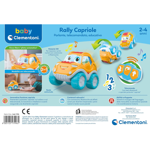 RALLY CAPRIOLE: una divertente auto telecomandata per bambini con uno speciale pulsante capriola, per far ribaltare il fuoristrada; con due modalità di gioco e tante canzoncine e filastrocche per imparare i primi numeri